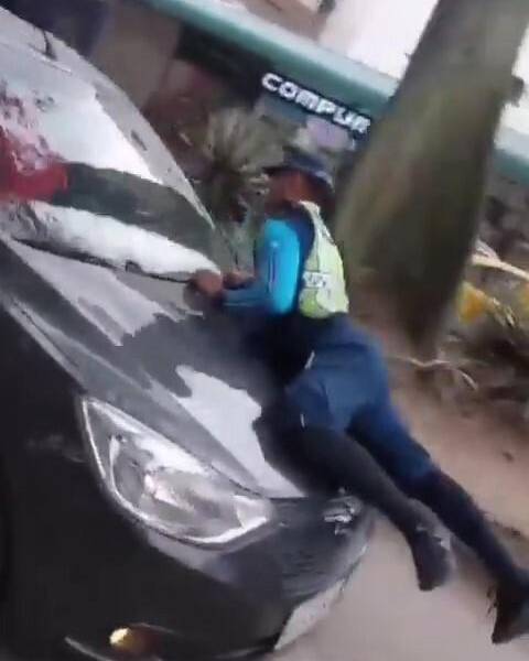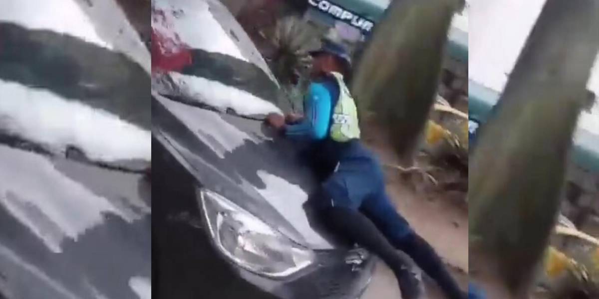 Sin embargo, cuando el uniformado se disponía a acercarse al conductor, este aceleró llevándose al agente sobre el capó del vehículo hasta la calle Clemente Ballén.