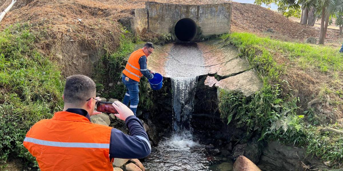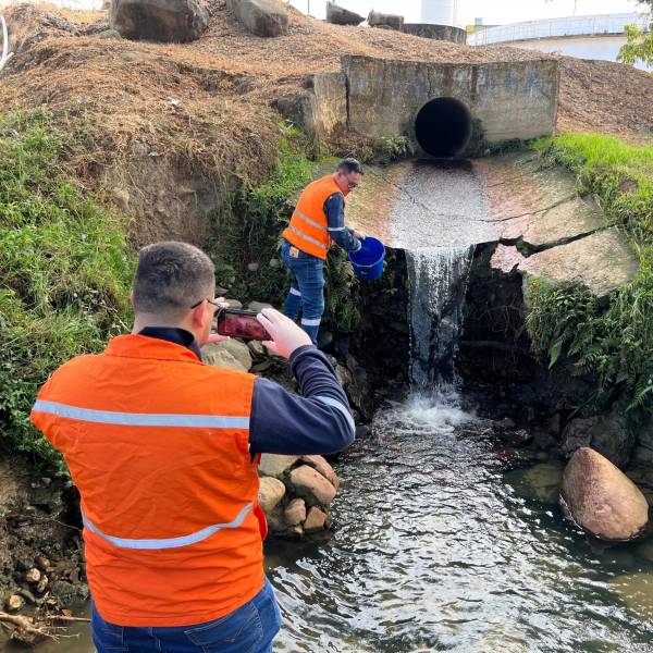 Personal del Ministerio de Ambiente y Energía tomó muestras de agua cruda en una zona de descargas hacia el río Daule.