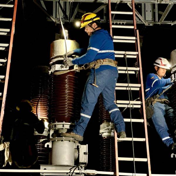Imagen de técnicos de CNEL trabajando en una central eléctrica.( )