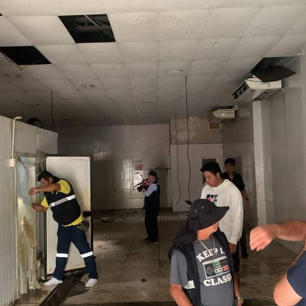 Al entrar al inmueble, el personal de la dirección de Justicia y Vigilancia constataron paredes y pisos con manchas de sangre, frigoríficos en mal estado y fuertes olores. Además, en la vereda, había bidones y gavetas con residuos orgánicos, así como carnes en estado de descomposición.