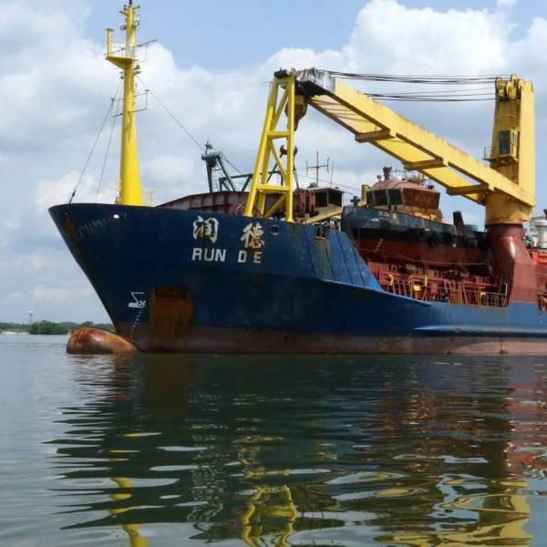 Vista del barco en el que llegó la maquinaria para el dragado en el río Guayas.( )