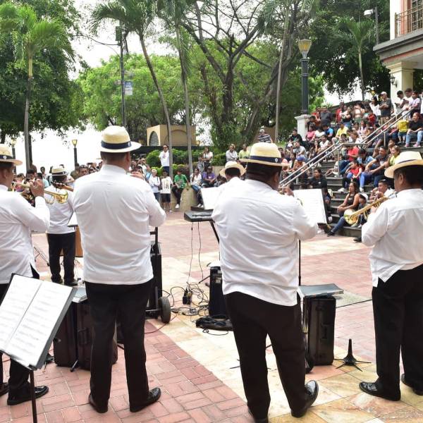 La fiesta musical se trasladó hasta la calle Panamá en el centro de Guayaquil durante este segundo día de feriado. 60 músicos de la banda municipal concentraron la atención de peatones que transitaban por este corredor turístico.