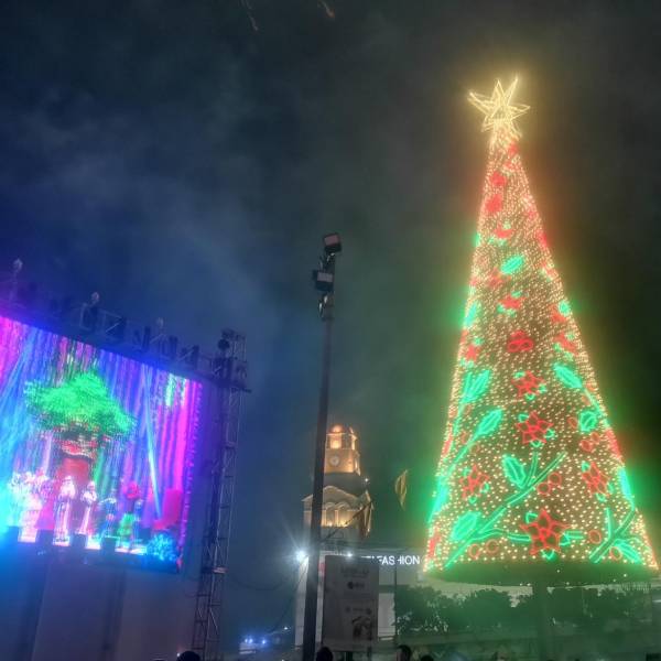 Un centro comercial realizó su tradicional encendido del árbol de Navidad. El montaje de la estructura duró 10 días y debido los cortes de luz, solo se prendieron las luces durante el evento.