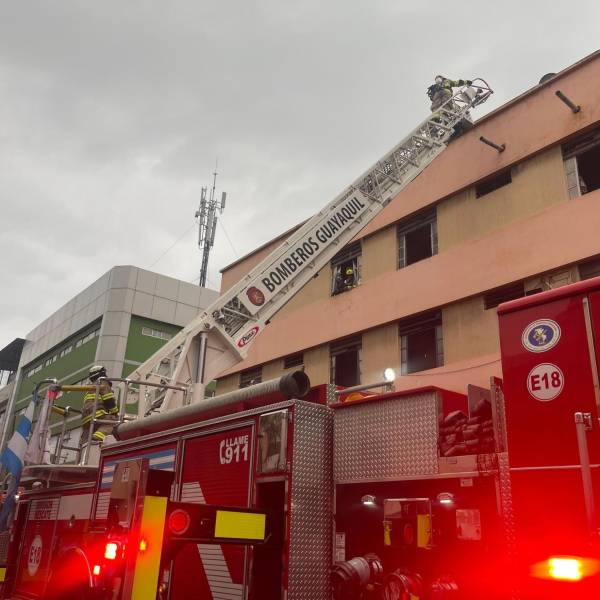 El Cuerpo de Bomberos Guayaquil atendió la emergencia e indicó que el fuego que se producía en el segundo piso del edificio fue controlado.