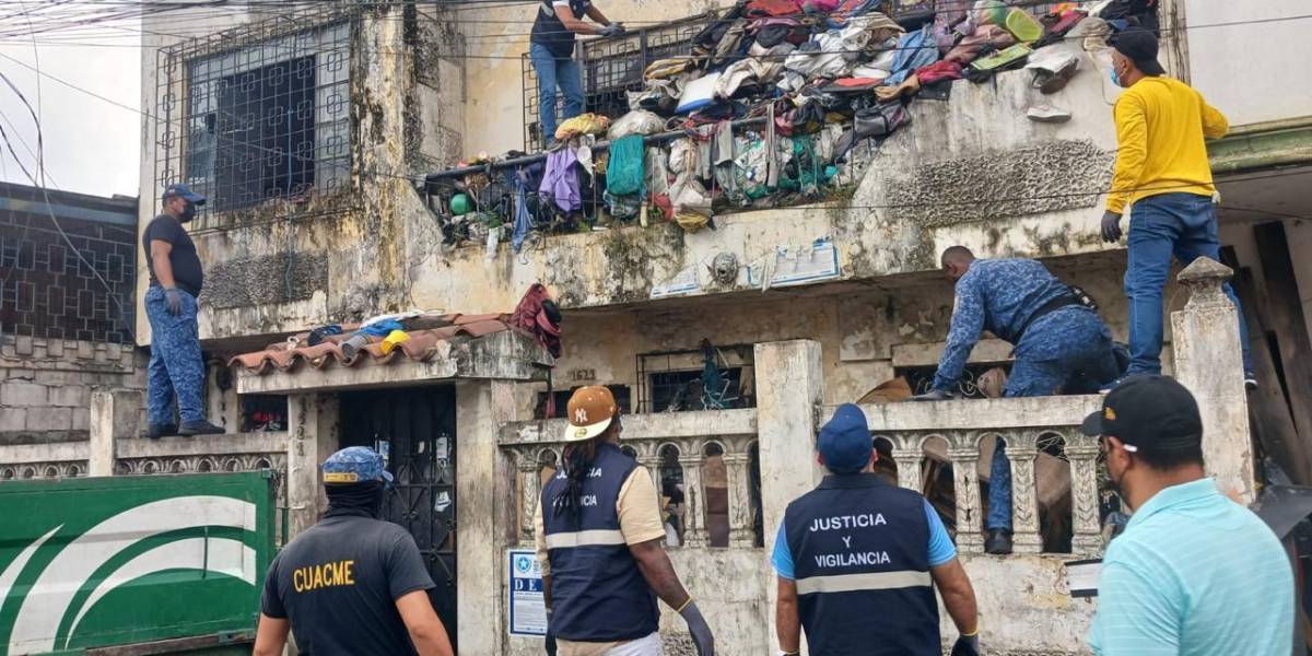 Personal de la Dirección de Justicia y Vigilancia, de la Dirección de Aseo Cantonal, Mercados y Servicios Especiales (Dacmse) y de Urvaseo acudió al sitio para las tareas de limpieza.