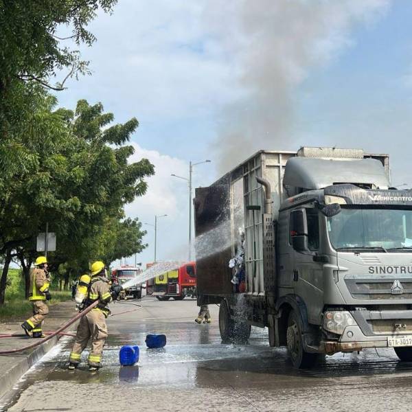 Guayaquil | Un furgón que transportaba desechos se incendió en plena vía