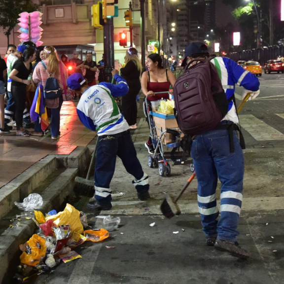 Botellas, fundas plásticas y restos de comida fueron algunos de los residuos que dejó el desfile, en el que participaron 31 bloques de organizaciones LGBTI. La Dirección de Aseo Cantonal, Servicios Especiales y Urvaseo se movilizaron desde la noche para devolverle el orden a las calles.