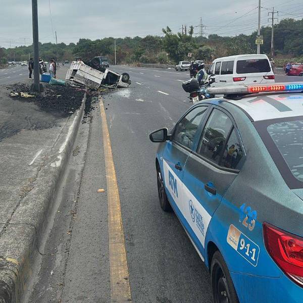 Uno de los accidentes más graves ocurrió en la vía Perimetral, cerca del ingreso a la ciudadela Puertas del Sol, en sentido norte–sur. En este punto, una camioneta blanca equipada con un balde de carga de madera terminó volcada a un costado de la vía, bloqueando parcialmente el tránsito y generando una fuerte congestión en la zona. Las autoridades investigan las circunstancias del volcamiento, aunque no se ha confirmado si dejó personas heridas.