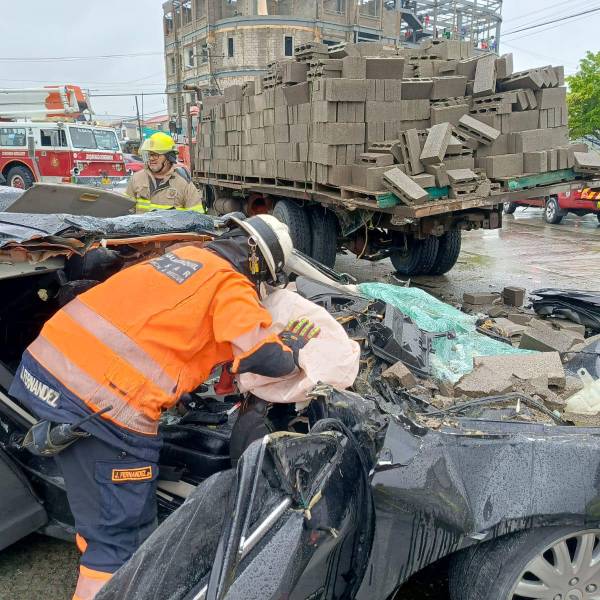 Un grave choque entre un automóvil negro y un camión que transportaba bloques de cemento se registró en las avenidas Isidro Ayora y Francisco Rizzo, sentido sur - norte, en el norte de Guayaquil.