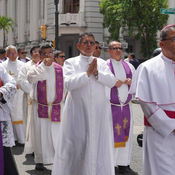 Los religiosos, todos ellos de la Arquidiócesis de Guayaquil, recorrieron 10 cuadras desde la Basílica Menor Nuestra Señora de la Merced hasta la Catedral Metropolitana.
