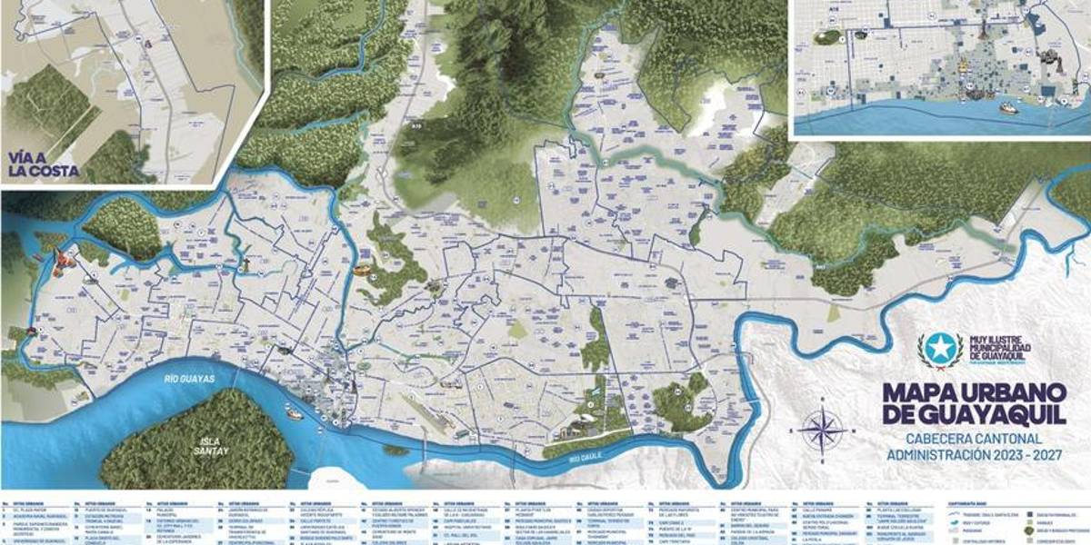 Guayaquil ya tiene un nuevo mapa oficial. Después de casi tres décadas, el Municipio presentó una actualización que refleja el desarrollo urbano, demográfico y territorial que ha experimentado la ciudad, especialmente hacia el noroeste y la vía a la costa. La versión impresa, de 90 por 54 centímetros, fue distribuida gratuitamente junto a un diario local, mientras que la versión digital se puede consultar en www.mapa.guayaquil.gob.ec.