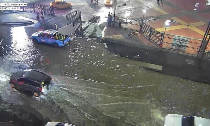 La noche de este martes, 21 de marzo, en Guayaquil no llovió, pero ciertas calles empezaron a inundarse. El agua no provenía del cielo, sino de las alcantarillas en las zonas adyacentes al Malecón y a los ramales del estero Salado, esto debido a la marea alta.
