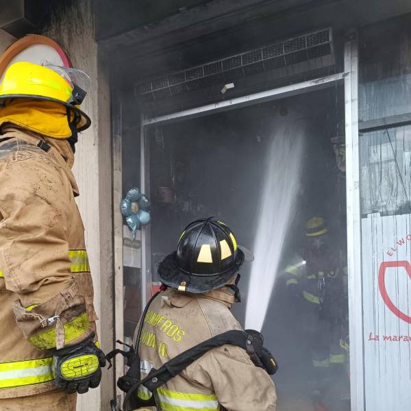 40 bomberos se desplegaron para atender este incendio que afectó a un local de un centro comercial del kilómetro 11 de Vía a la Costa. Dos personas se vieron afectadas por el humo.