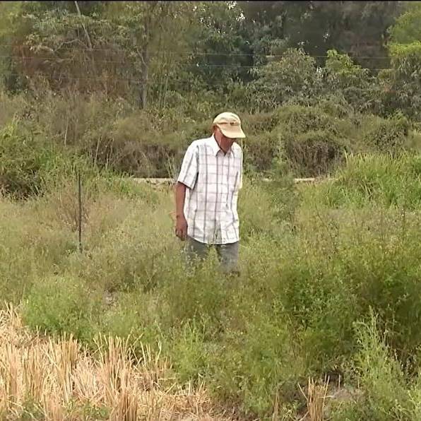 Todos los días, don Antonio Quinto, de 78 años, recorre un sendero de arrozales en el recinto Jovito, en el cantón Salitre.