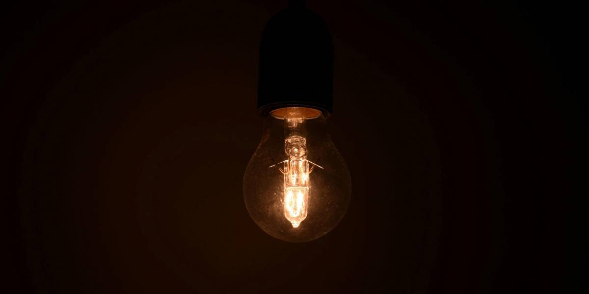 Imagen de una bombilla encendida en medio de la oscuridad.( )