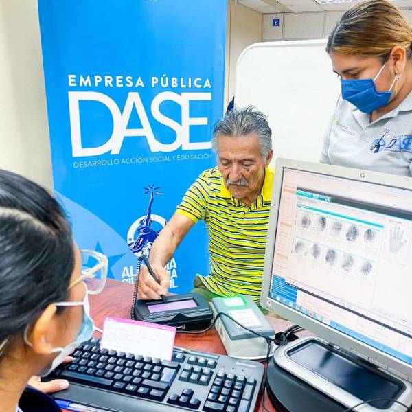 Imagen de una persona siendo asistida en un proceso de cedulación en el Registro Civil Municipal de Guayaquil.( )