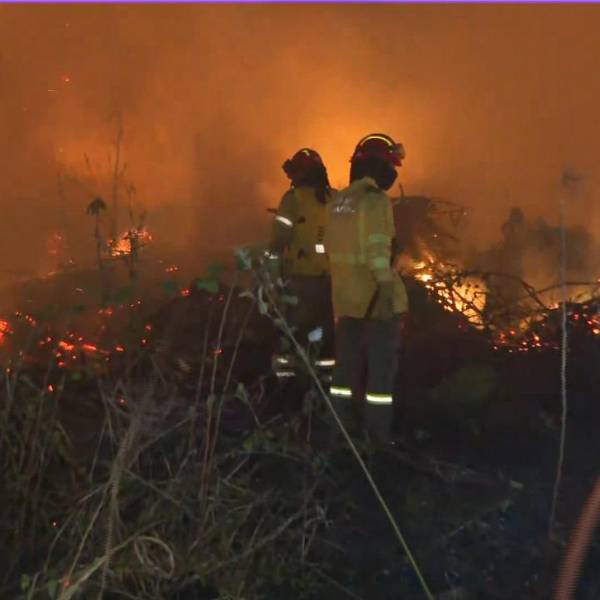 Los bomberos indicaron que la emergencia está en un nivel de alarma 2 y que ya ha consumido cerca de cuatro hectáreas de vegetación seca.
