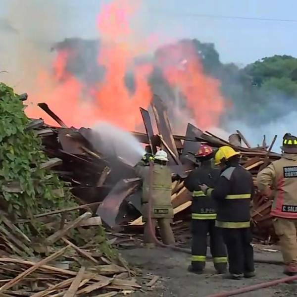 Un depósito de madera sufre un incendio en el kilómetro 27 de Vía a la Costa, en Guayaquil