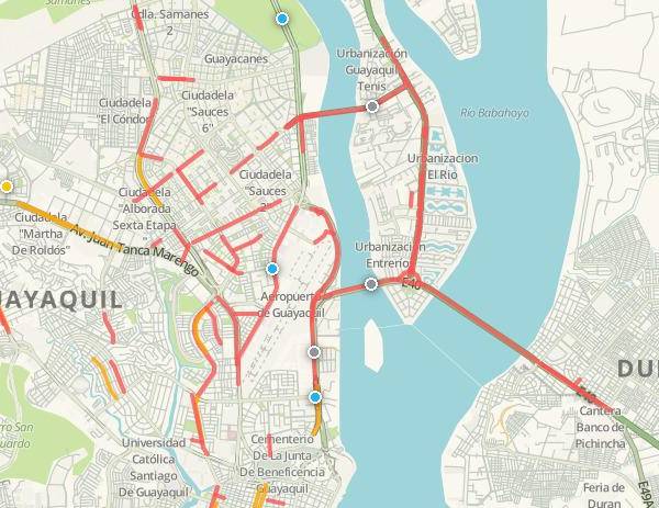 Así se ve el caos vehicular en Guayaquil, tras el cierre de puente en la avenida Pedro Menéndez Gilbert. ( )