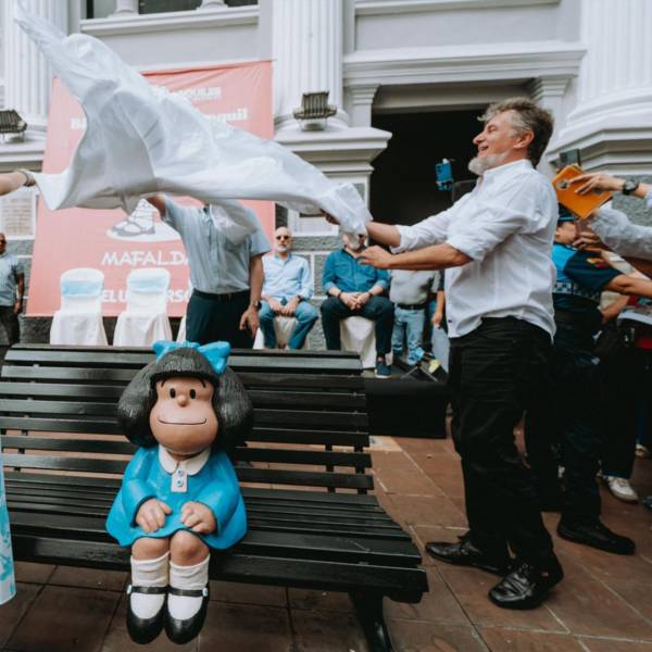 Bueno, esa niña está ahora sentada frente a Diario el Universo, en pleno centro de la ciudad, recibiendo a los visitantes y aceptando las fotos que todo el mundo quiere tomarse con ella. Fue instalada ahí y ahí se quedará de manera permanente, sumando a Guayaquil como una de las ciudades que tienen una de escultura oficial de Mafalda. Pablo Irrgang, escultor, dio más detalles.