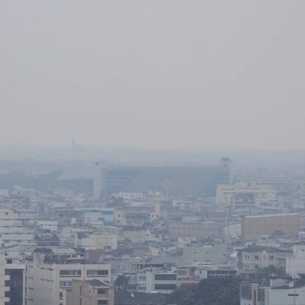 Una neblina inusual cubrió la tarde de este viernes 7 de junio la ciudad de Guayaquil. El fenómeno afecta también a Samborondón y Durán. Según el ECU 911, no existen reportes de que la bruma esté asociada con algún incendio, no obstante, ciudadanos reportaron que se percibía un olor a humo.