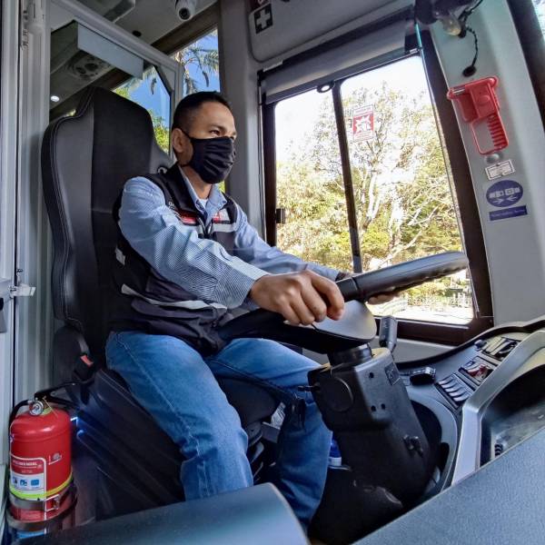 Conducto de un bus eléctrico que opera en Guayaquil.