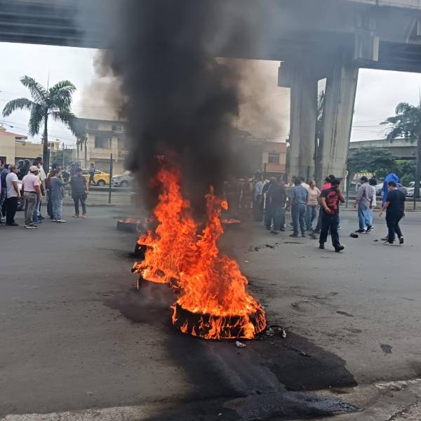 Imagen de llantas quemadas para cerrar la avenida 25 de Julio, en el sur de Guayaquil.( )