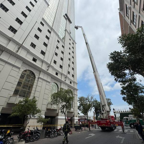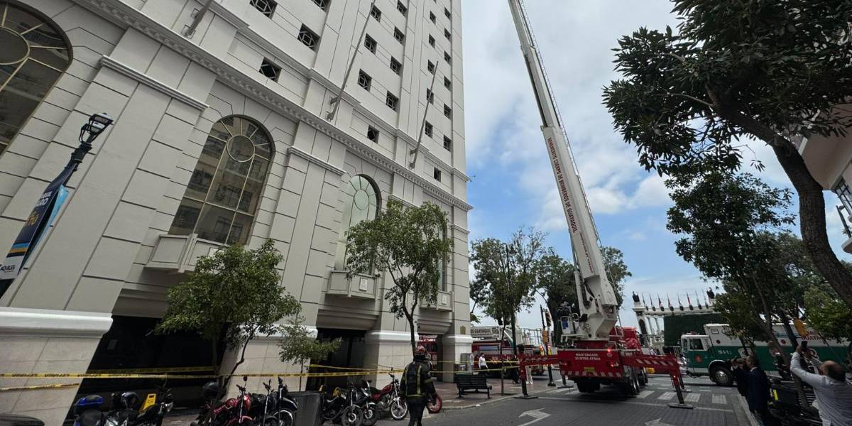 Dos personas fueron rescatadas de un andamio en un edificio del centro de Guayaquil