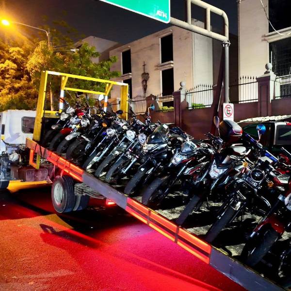 Humberto Plaza, gobernador del Guayas, lideró la intervención en la avenida Barcelona, que resultó en la retención de 23 motos, dos tricimotos y un vehículo retenido. Una moyo tenía una adulteración numérica.