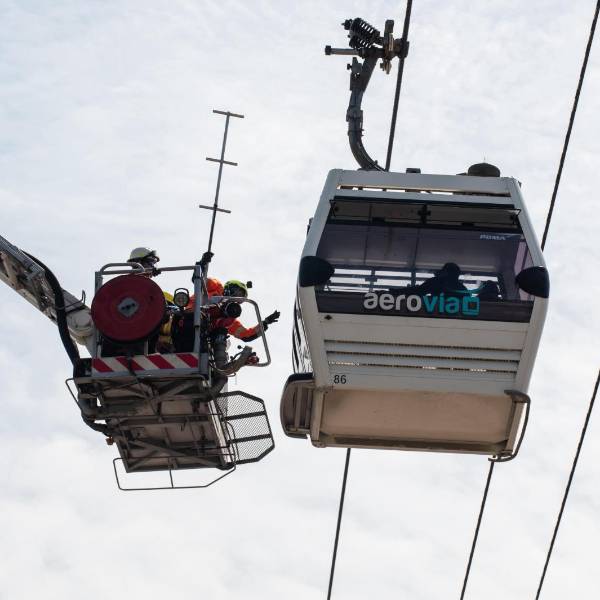 En el caso del teleférico urbano, 20 bomberos auxiliaron a las víctimas que se quedaron atrapadas en una cabina en los alrededores del hospital Luis Vernaza.