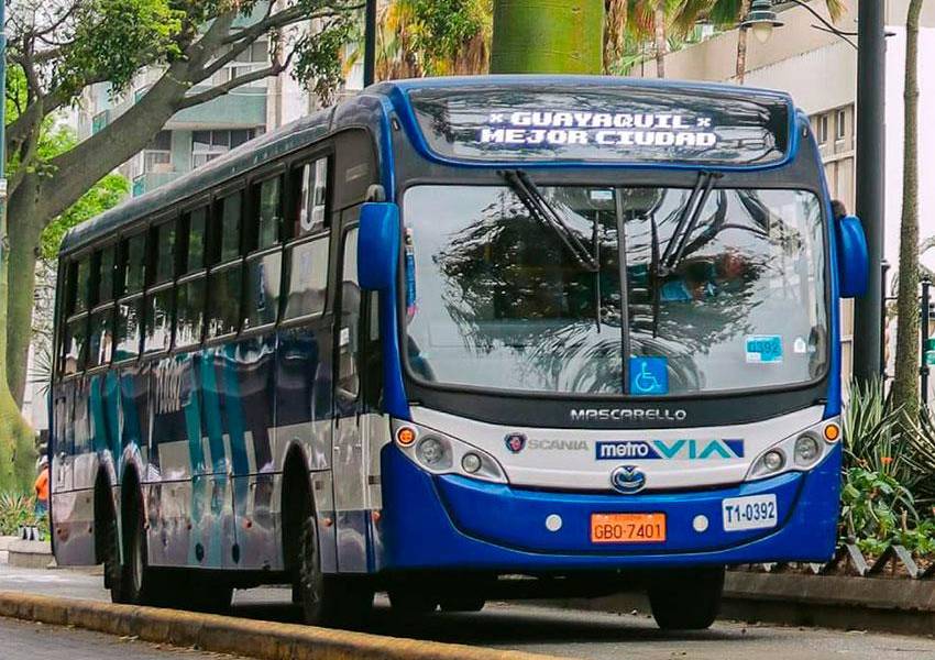 Foto de una unidad de Metrovía recorriendo el centro de Guayaquil.( )