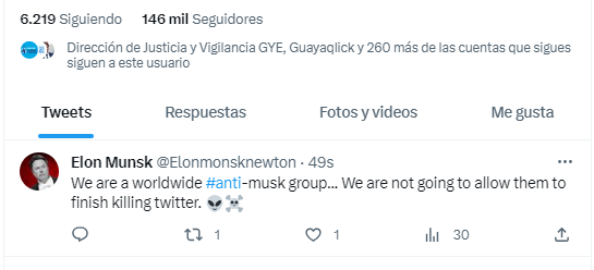 El tuit publicado por los hackers fue borrado, sin embargo, aún la cuenta mantiene el usuario @elonmonsknewton en vez del anterior que era @aquilesalvarez.