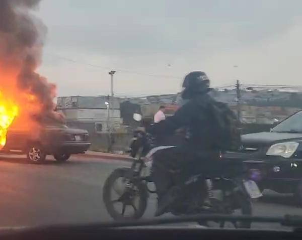 Foto de un carro incendiado en la Vía Perimetral, sentido norte-sur, pasando al Hospital Universitario.( )