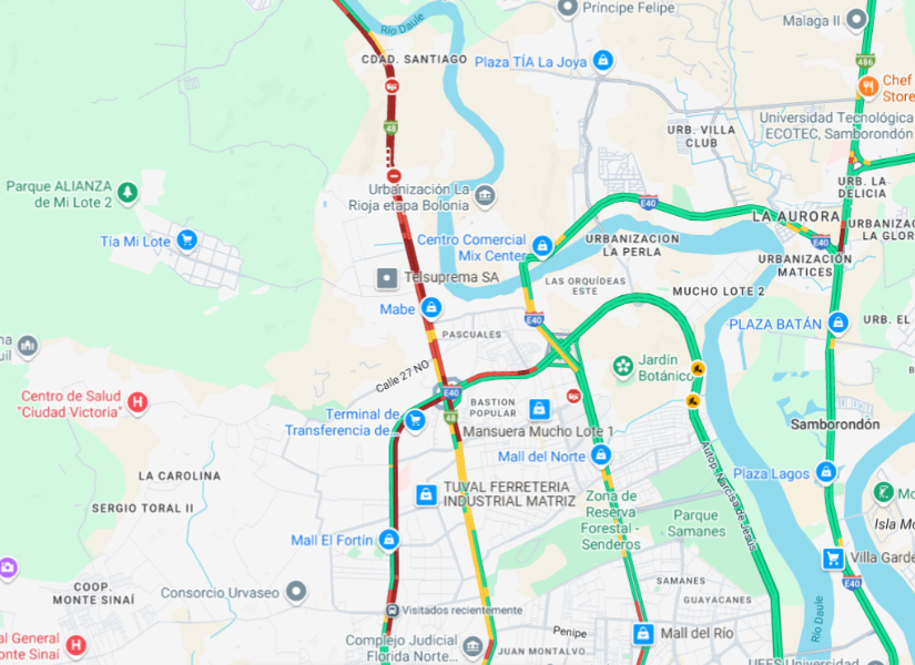 Esta situación ha hecho que los vehículos no puedan avanzar con rapidez en ambas vías, como se observa en mapas con tráfico en vivo, como es el caso de Google Maps.