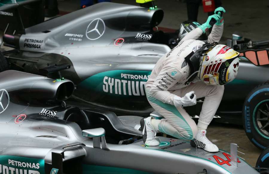 El piloto británico Lewis Hamilton (Mercedes) ganó este domingo el Gran Premio de Brasil de Fórmula 1, con su compañero de equipo, Nico Rosberg, segundo, y el Mundial se decidirá en la última carrera, en Abu Dhabi.
