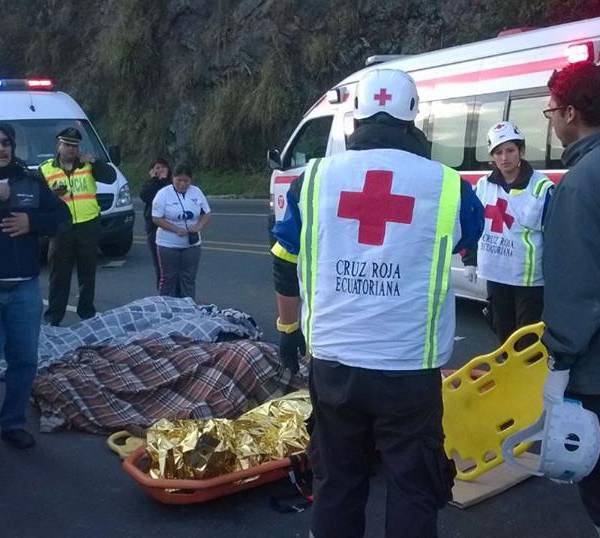 El vehículo, que cubría la ruta entre el puerto pesquero de Manta (suroeste) y Quito, ubicada a 2.850 metros de altura, "cayó unos 500 metros" hacia un abismo cuando transitaba por la vía Alóag-Santo Domingo, según el ECU 911