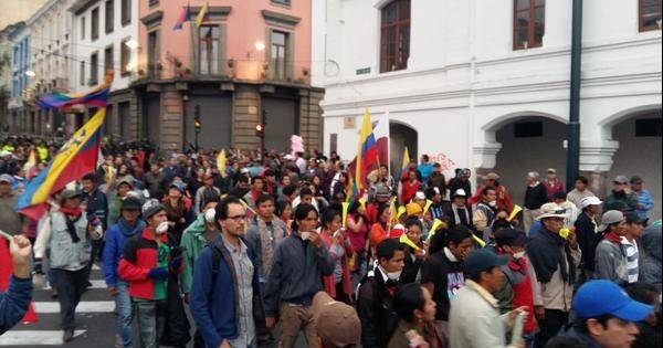 Entre las 16h00 y 17h00 salieron las organizaciones indígenas, tanto del norte, como del centro y sur del país, en el segundo día de movilizaciones. En Quito lo hicieron desde los exteriores de la Caja del Seguro, avanzaron por San Blas, para luego dirigirse a la calle Guayaquil, ubicada en el Centro Histórico de la capital.