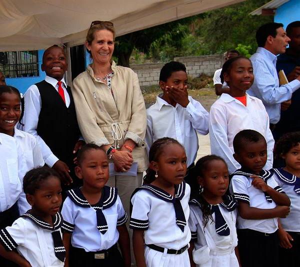 La infanta Elena de España visitó hoy en el norte de Ecuador un centro educativo y de salud que brinda apoyo a 250 niños y jóvenes afrodescendientes y que también previene el maltrato infantil y la violencia intrafamiliar.