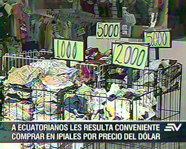 Así, en esta ciudad fronteriza, se puede adquirir una blusa de mujer que cuesta 10.000 pesos, en 4 dólares con 11 centavos. Una camiseta de hombre de 14.900 pesos, se puede comprar con poco más de 6 dólares. Los jeans para niñas que cuestan 8.000 pesos, los ecuatorianos pagan 3 dólares con 30 centavos.