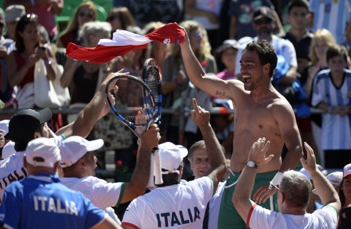 Italia se convirtió este lunes en el último equipo clasificado para los cuartos de final del Grupo Mundial de Copa Davis al derrotar al vigente campeón Argentina en dramática serie por 3-2.