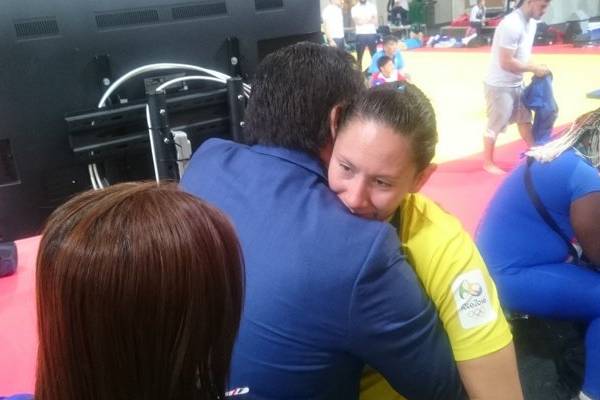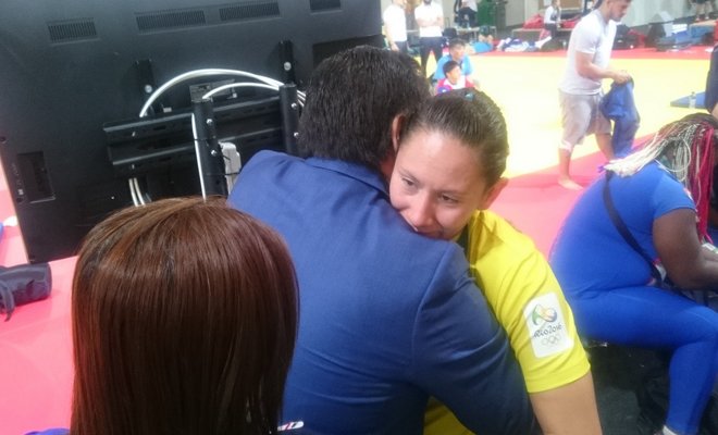 Presidente @JUDOECU saluda a judoca @Estef_Kikai_63 luego de caer en su segundo combate en #Rio2016 #TeamEcuador pic.twitter.com/3BNkp1G5y2