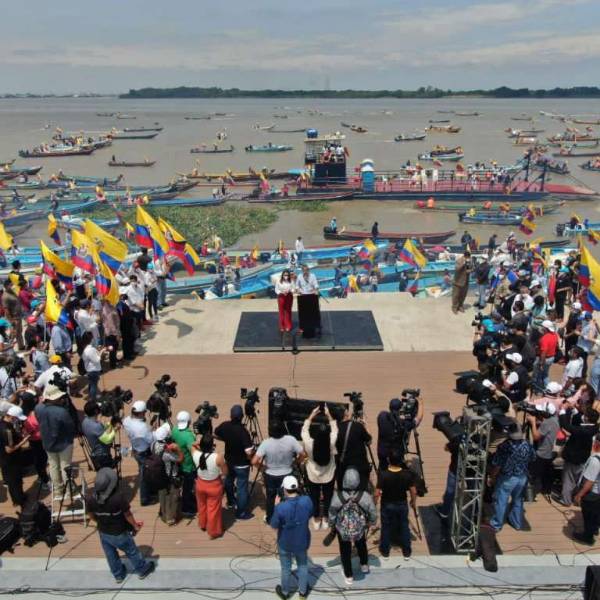 Lasso cerró su campaña al pie del río Guayas. Foto: Twitter @LassoGuillermo.