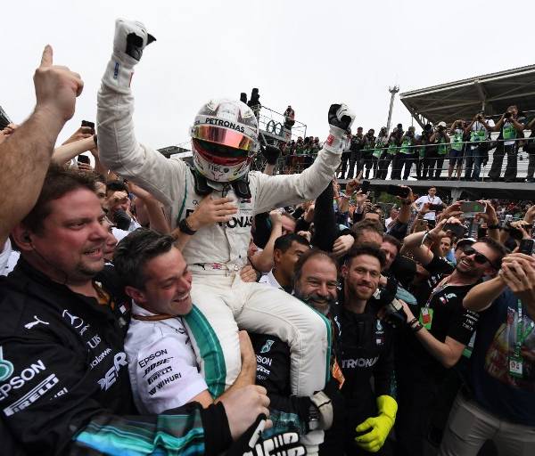 El británico Lewis Hamilton, coronado hace dos semanas en México, ganó el Gran Premio de Brasil, en Sao Paulo, y permitió que Mercedes se hiciera con el campeonato del mundo de constructores de la temporada de Fórmula 1.