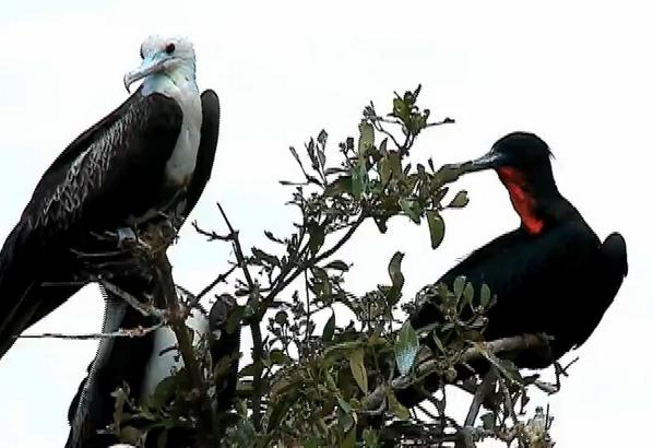 Son miles de fragatas que vienen a este lugar para aparearse. Los machos con su característica membrana construyen nidos y desde tierra inician un ritual para atraer a las hembras que sobrevuelan buscando una pareja. Esto sólo sucede aquí, no son pocas las islas que se encuentran en el canal del golfo de Guayaquil, pero esta ceremonia de convencimientos solo ocurre en una.