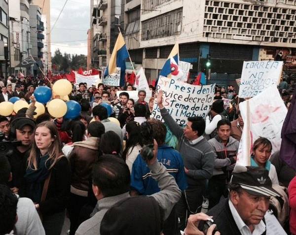 Grupos de obreros, estudiantes, médicos, ecologistas, organizaciones indígenas y barriales marchan por las calles de Quito, y otras ciudades del país, en rechazo a distintas políticas del Gobierno y el oficialismo como las enmiendas constitucionales y el reciente proyecto de reformas al Código de Trabajo.