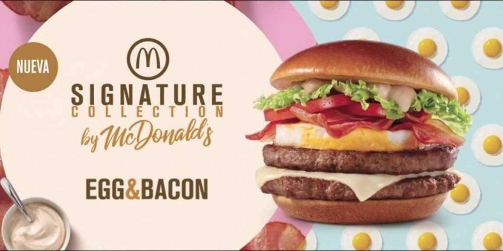 Con el objetivo de seguir las tendencias del mercado y la demanda de nuevos sabores de los consumidores, McDonald’s presenta su plataforma Signature Collection con el lanzamiento de su nueva hamburguesa Egg & Bacon. La plataforma Signature de McDonald’s, que se lanzó con éxito en el país a principios del año 2016, está basada en recetas de autor y en ingredientes exclusivos y de primera calidad. La nueva Egg & Bacon incorpora ingredientes premium; pan suave tipo brioche, mayonesa grill con un toque de sabor ahumado y huevo. También están presentes los ingredientes clásicos como la lechuga y el tomate que se combinan de la mejor manera con el queso cheddar blanco y el tocino crujiente. La nueva Egg & Bacon podrá pedirse en sus dos versiones: carne o pollo (grill o crispy).