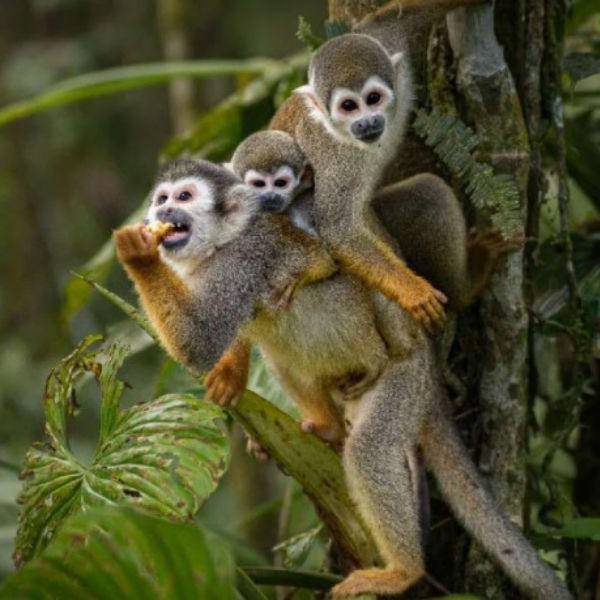 Los primeros árboles que aparecen en el bosque Zanja Arajuno, en Pastaza, son de guaba, superan 20 metros y forman una copa por donde se filtra la luz en hilos dorados. Una manada de 30 monos “barizos” se desplaza entre sus ramas alimentándose de insectos, frutas y hojas tiernas.