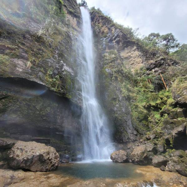 Es una cascada de 400 metros con tres caídas. A la primera se llega en cinco minutos a pie, por escalinatas y puentes de madera y piedra, pero la segunda implica un recorrido de hora y media por un sendero con tierra húmeda y tramos empinados que dejan ver de cerca su flora, más de 20 especies de plantas entre las que se destacan especies de bromelias, saúcos, anturios y romerillos