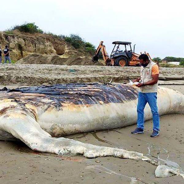 El Ministerio del Ambiente informó que fue enterrada una ballena jorobada, que se había varado en Playa Vardero, balneario perteneciente a Guayaquil, justo en el inicio de la temporada para el avistamiento de ese tipo de cetáceos frente al perfil costanero ecuatoriano.