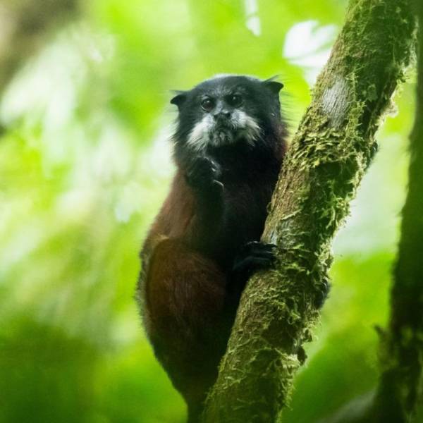 Cuando cae el sol, la oscuridad amplifica el croar de las ranas, que comienza al atardecer y se intensifica durante la noche. Entre los troncos aparece el “cutín de puyo”, una diminuta rana que lleva el nombre de la ciudad y se ha convertido en emblema científico de la zona. En medio del musgo, una hembra cuida los huevos gelatinosos y transparentes donde se distingue el movimiento de la vida en su interior.